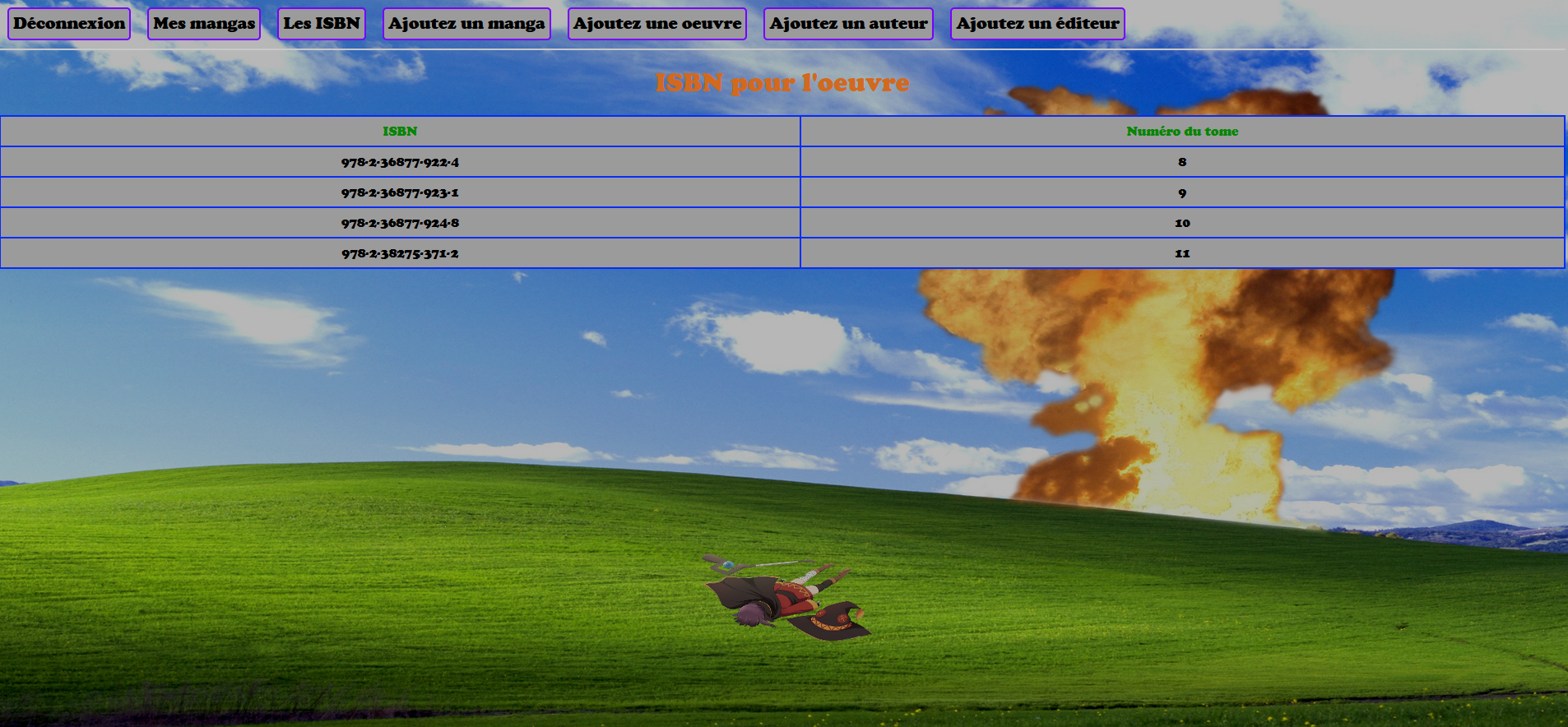 Ce site de portfolio a été fait main par mes soins, de A à Z et est hébergé sur mon PC NAS (d'ailleurs, avez-vous trouvé la Peugeot 404 ?). J'ai aussi réalisé entièrement un autre site destiné à organiser ma mangathèque. Il me permet d'insérer de nouveaux mangas, de consulter les ISBN de chacun de mes tomes et de calculer automatiquement le prix de ma collection. Le développement de ces sites sont le fruit de mes compétences acquises durant mon BTS. N'ayant pas choisi la voie du développement informatique, ces sites ne sont pas destinés à démontrer mes compétences en développement Web, mais à simplement (dans le cas de ce portfolio) avoir un support complémentaire à mon CV.